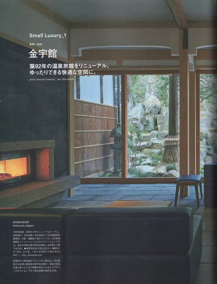 位於長野縣松山市的木造旅館「金宇館」是在1928年創業,在2009年繼承家業的第4代館主因為希望旅館能夠繼續經營100年,所以在2020年進行全面改裝並且在2020年4月重新開幕。
