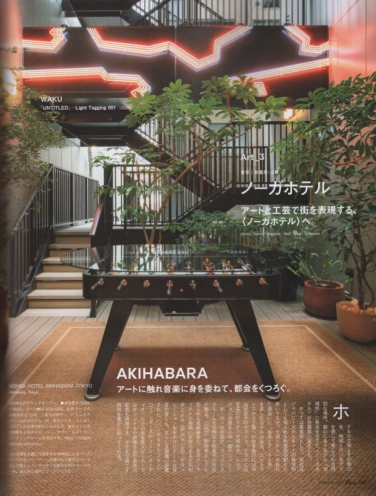 以往是電器街,現在成為日本文化發源地的秋葉原,2020年9月在秋葉原誕生了以「享受音樂、藝術以及美食」為主題的全新飯店「NOHGA HOTEL AKIHABARA TOKYO」。