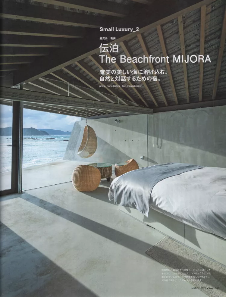 距離奄美機場僅10分鐘車程的「The Beachfront MIJORA」在2019年7月開幕,奄美出身的建築家山下保博為了守護當地文化,特別使用傳統工法來將古民家改裝成民宿「傳泊The Beachfront MIJORA」。